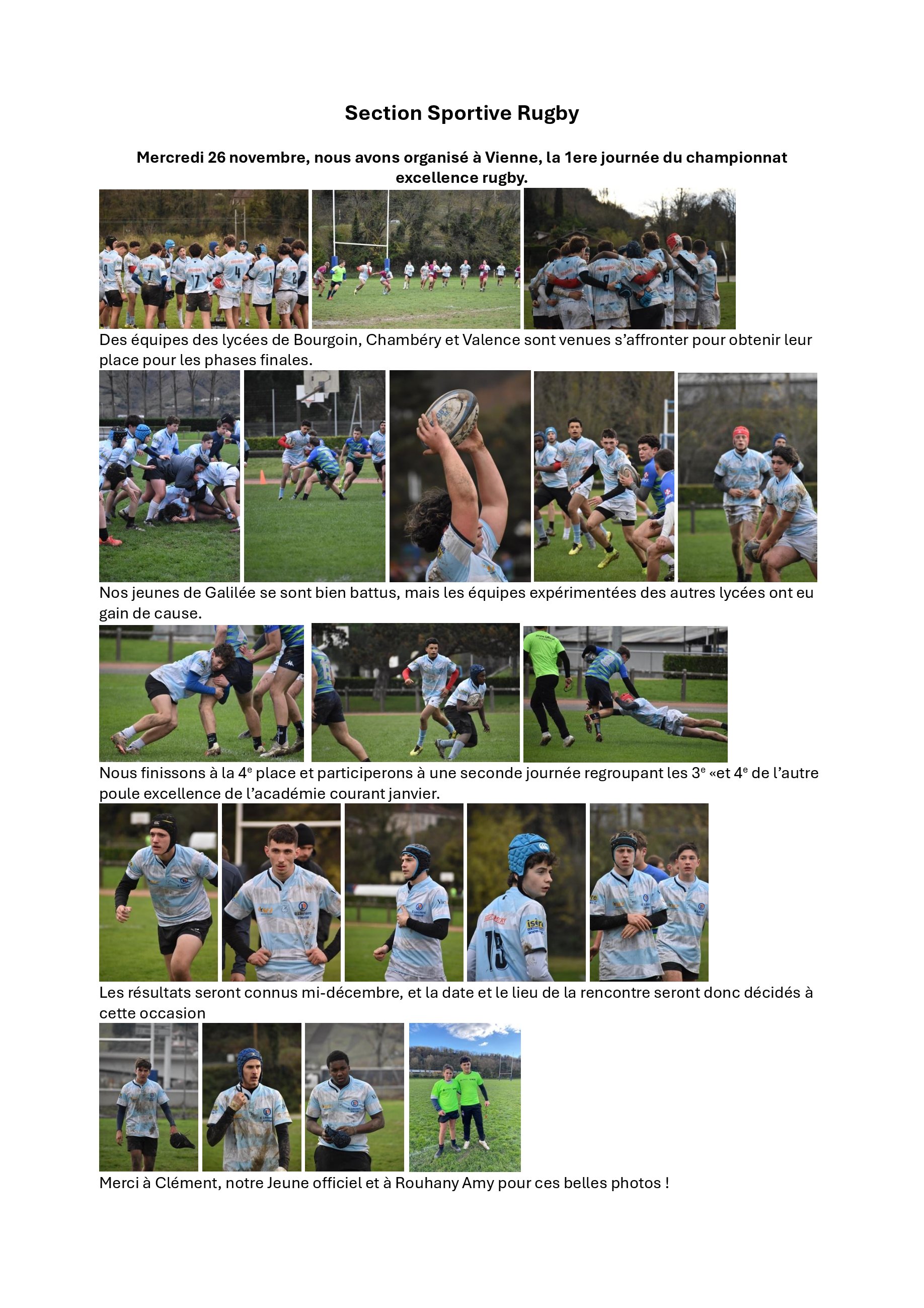 Rencontre sportive : Mercredi 26 novembre, nous avons organisé à Vienne, la 1ere journée du championnat excellence rugby.